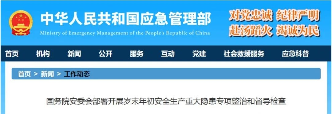 國(guó)務(wù)院安委辦開(kāi)展歲末年初安全生產(chǎn)重大隱患專項(xiàng)整治和督導(dǎo)檢查