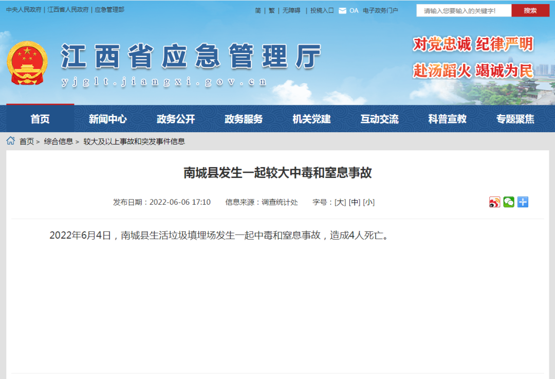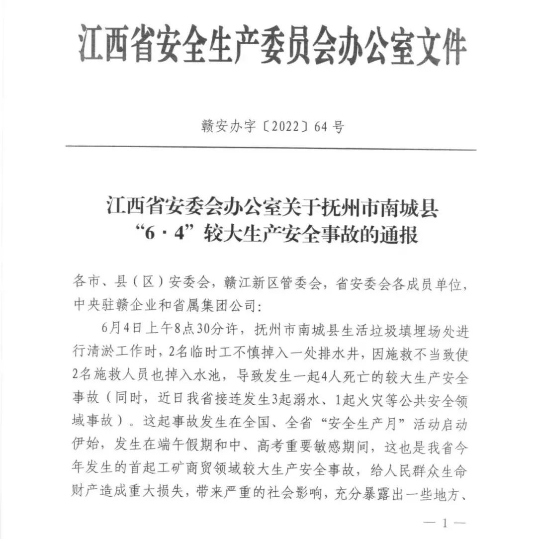 事故通報:4人死亡!江西省撫州市南城縣“6.4”較大生產事故