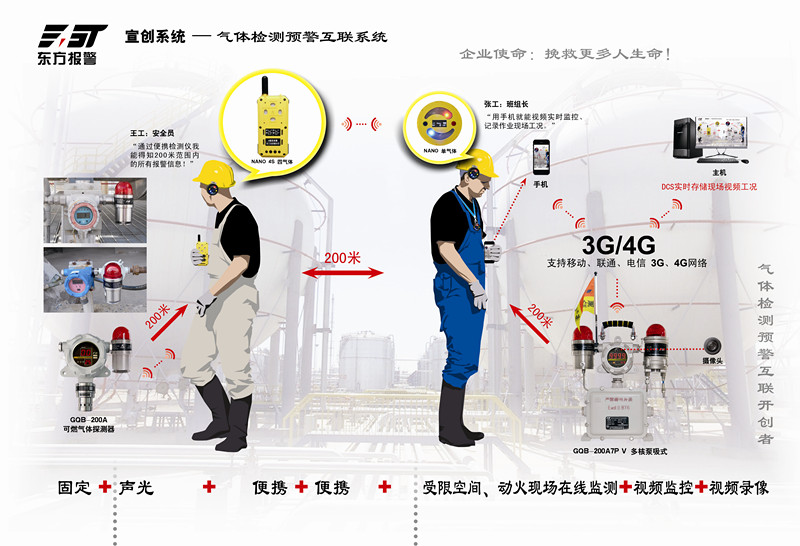 那么,如何解決這一問題,成了燃眉之急。哈爾濱東方報警的互聯移動式氣體檢測預警儀GQB-200A7P就是針對有限空間與臨時施工、搶修現場的作業安全隱患問題而研發的。