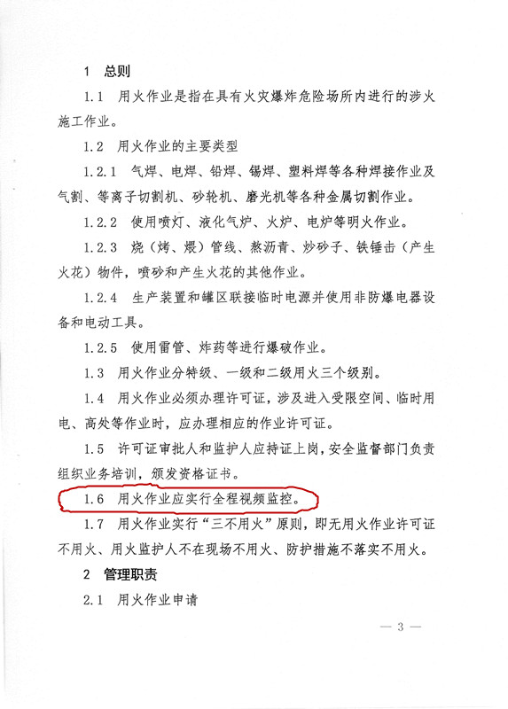 《中國石化用火作業(yè)安全管理規(guī)定》1.6中提到了用火作業(yè)應(yīng)實行全程視頻監(jiān)控,“中國石油化工集團公司安全管理手冊”中多次提到視頻監(jiān)控,可見視頻監(jiān)控在中石化的應(yīng)用非常廣泛,意義重大。如下圖。
