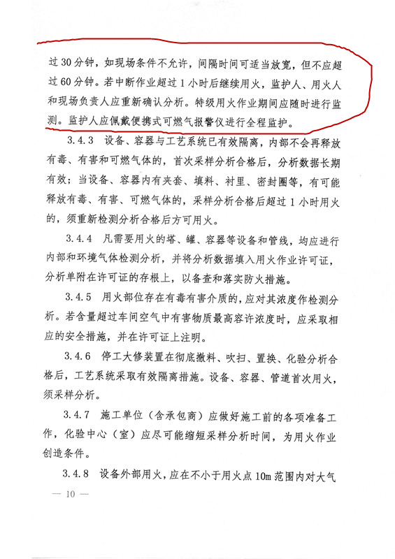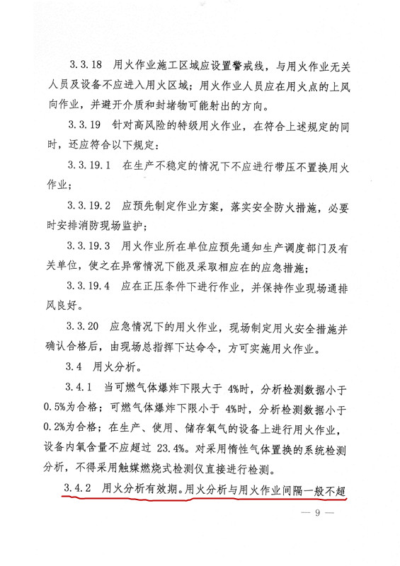 3.4.2中指出:用火分析有效期。用火分析與用火作業(yè)間隔一般不超過30分鐘