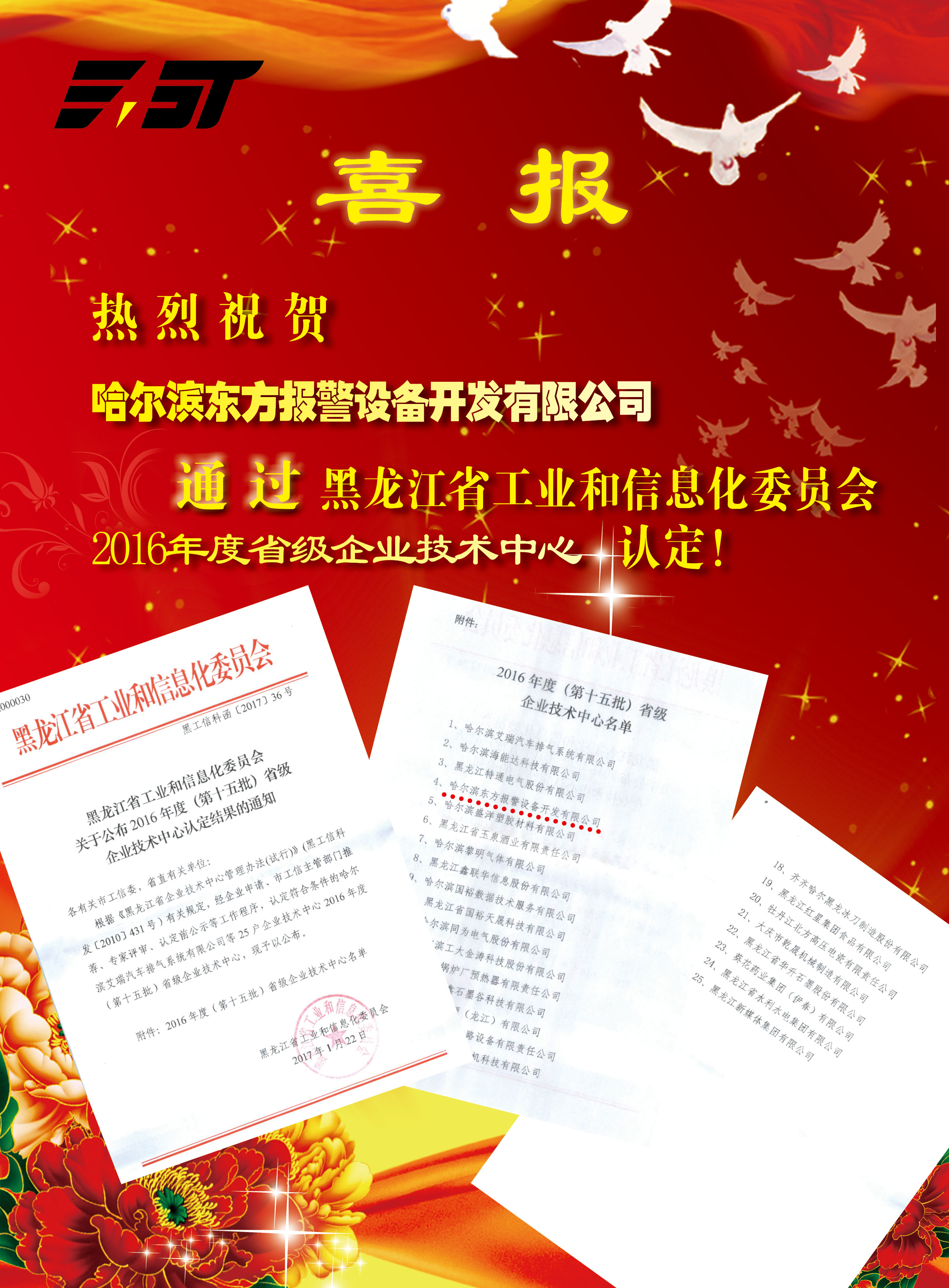 東方報警通過黑龍江省工業和信息化委員會2016年度省級企業技術中心認定!