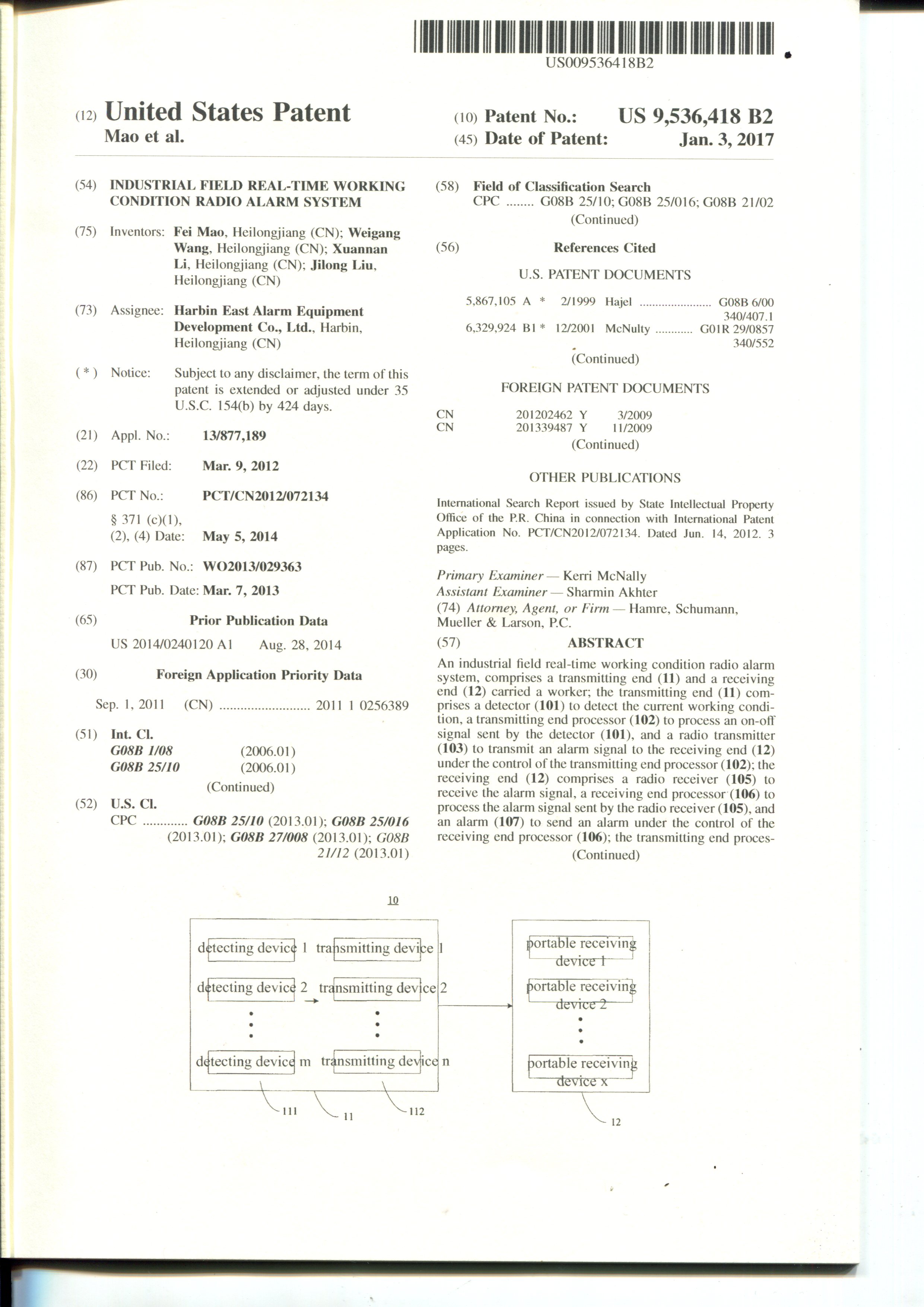 《從報警到預(yù)警的升華》---中國智造在美國獲得發(fā)明專利