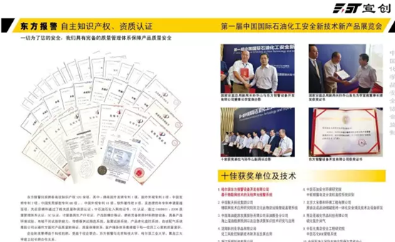 東方報警公司是中國化學品安全協會理事成員之一,多次榮獲黑龍江省“科技創新”優秀企業獎”,多次獲得“黑龍江省專利優勢示范企業”稱號。這是對東方報警這10多年來工作的肯定,我們會不驕不躁,繼續為大家提供更好,更安全的產品和技術。
