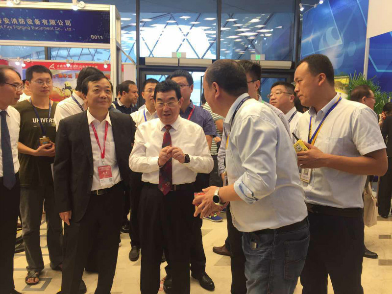 國(guó)家安全生產(chǎn)監(jiān)督管理總局總工程師王浩水,中國(guó)化學(xué)品安全協(xié)會(huì)秘書(shū)長(zhǎng)路念明 蒞臨展位于東方報(bào)警董事長(zhǎng)李宣南進(jìn)行深入交流