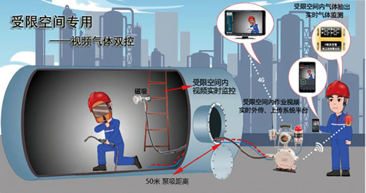 多年的受限空間事故中核心的兩個問題是:有害氣體如何阻止進入和進入后的氣體檢測預警。氣體檢測作為有害氣體進入受限空間后的最后一道防線,起到了至關重要的作用,原有的檢測手段無法有效的解決這個問題,以及無法對受限空間內的作業情況進行實時的視頻監控。