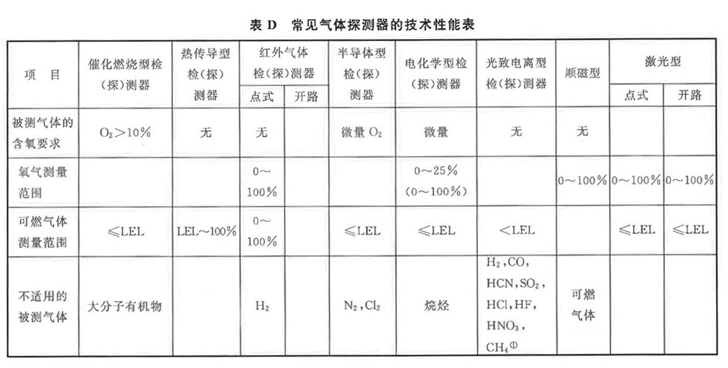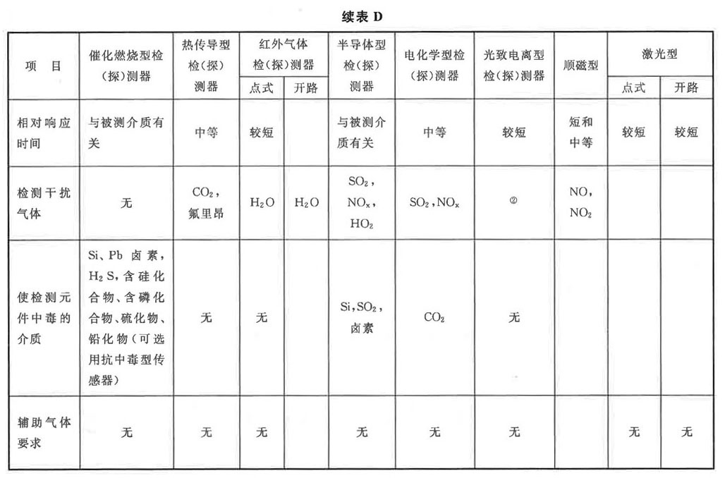 表D數值來源于歐洲標準《可燃氣體或氧氣檢測與測量儀器的選用、安裝、使用和維護指南》EN 60079-29-2-2007。