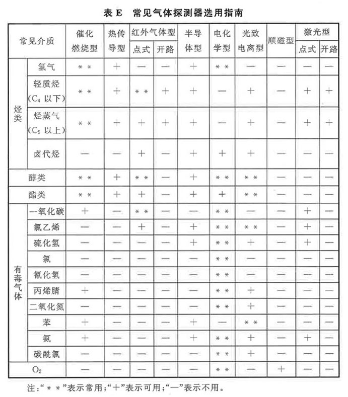 附錄E 常見氣體探測器選用指南