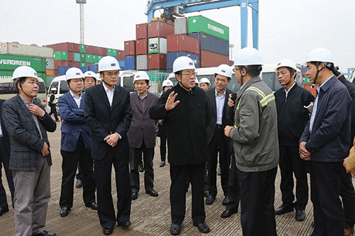 11月24日,楊煥寧在寧波港集團北侖第二集裝箱碼頭調研安全生產工作。