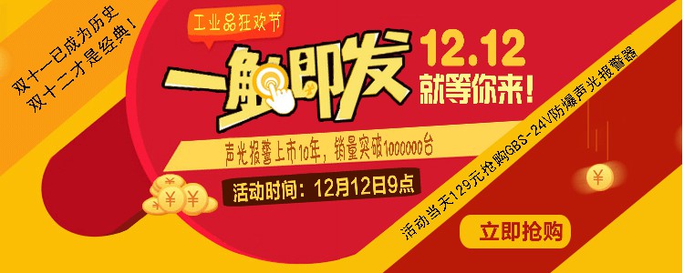 哈爾濱東方報警公司普惠危化品行業,開展129元限時搶購新款GBS-24V防爆聲光報警器活動,限量1500臺,搶購時間12月10日9:00~12月12日21:00。每人限購100臺,12月中旬發貨。