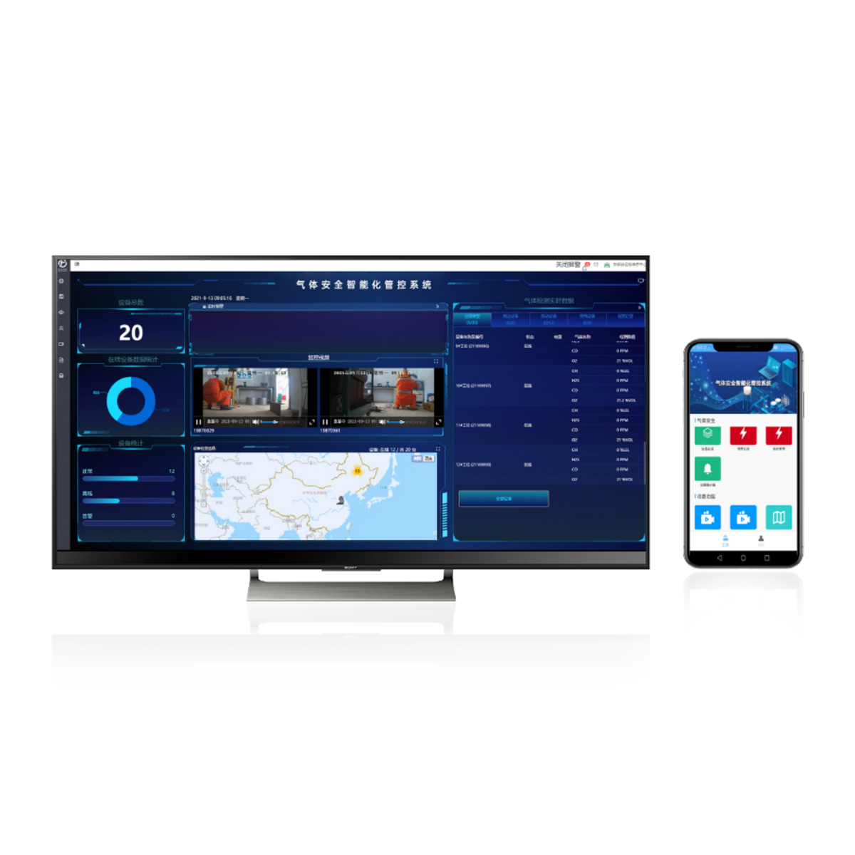 專用的氣體報警器管控平臺界面,將固定式氣體探測器、移動式區域氣體檢測報警儀、便攜式氣體檢測儀、以及移動視頻相融合,通過4G無線上傳的通訊方式,將氣體監測數據和監測視頻上傳至氣體安全智能化管控的軟件平臺。從而為企業綜合管理系統平臺的各種安全分析算法提供了數據;豐富了安全信息數據庫的數據類型,促進了該數據庫有效性建立的達成。