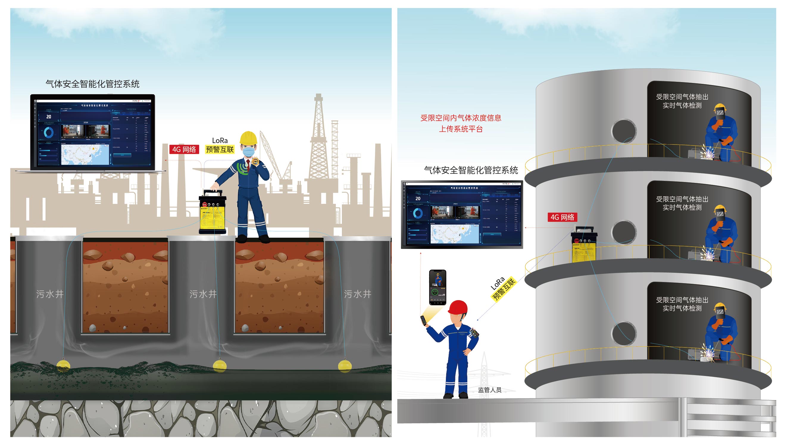 3、氣體濃度及預警信息4G上傳,彌補臨時作業氣體信息平臺監管缺失;