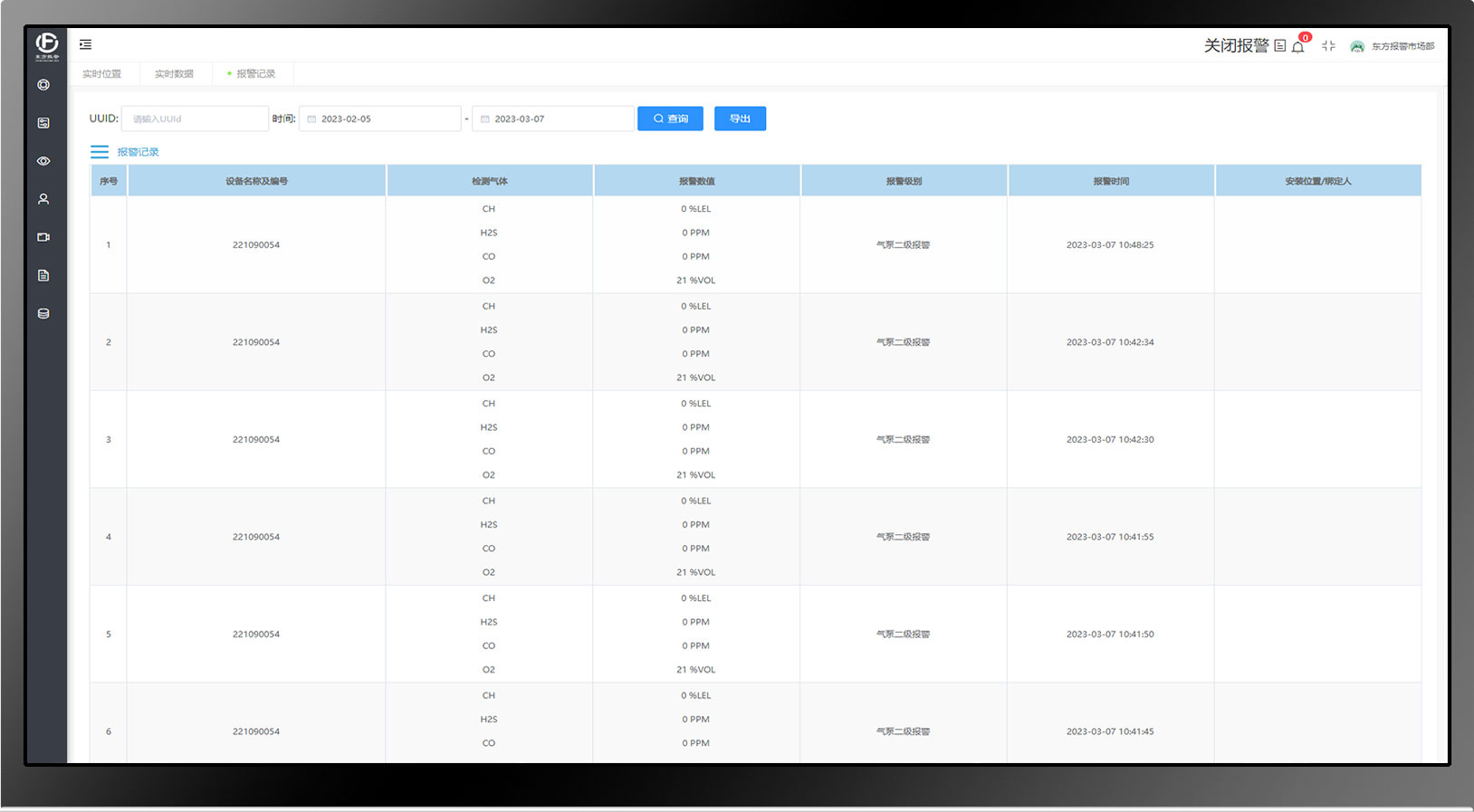 3、氣體濃度及預警信息4G上傳