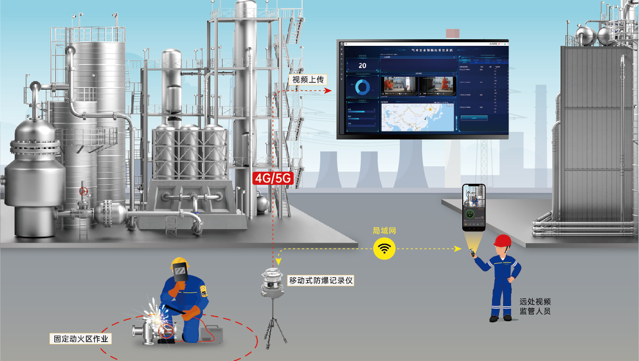 目前檢維修、受限空間、動火作業等特殊作業環境,在進行作業環境氣體檢測的同時,一般需要配備防爆視頻記錄設備,實時記錄現場作業畫面,監管人員及控制室人員可實時了解現場作業情況,并且視頻監控設備具有警示作用,可以避免作業人員違章操作,降低作業風險,一旦發生危險監管人員及控制室人員可第一時間采取應急營救措施,設備的視頻記錄可導出作為事后的分析依據。GB 30871-2022《危險化學品企業特殊作業安全規范》中也明確指出:特級動火作業應采集全過程作業影像,且作業現場使用的攝錄設備應為防爆型。